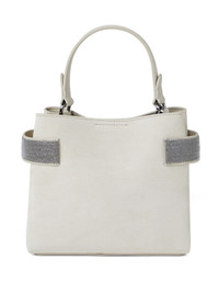Essence small top-handle bag in suede with precious bands
