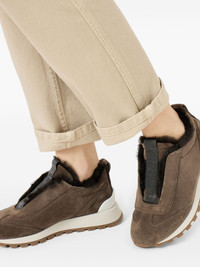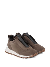 Suede runners with shearling lining and precious detail