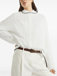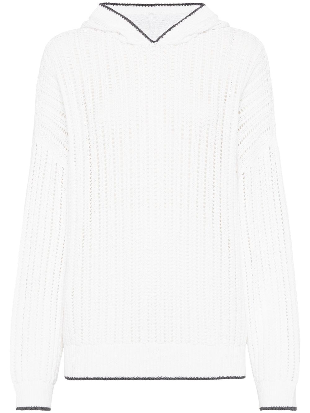 Openwork rib knit hooded sweatshirt in cotton with monili