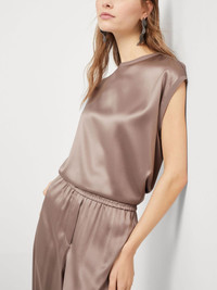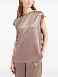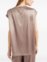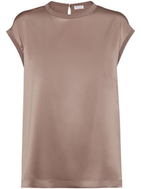 Monili-embellished satin T-shirt Highlights - Taupe - Single rear button fastening - Crew neck - Short sleeves - Straight hem Made in Italy Composition Silk 100%
