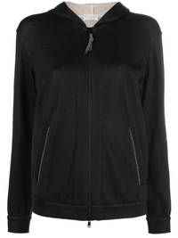 Monili-embellished zip-up hoodie Brunello Cucinelli features its signature Monili chain on this hoodie. Constructed from a cotton-silk blend, this casual design is elevated by the subtle motif for a contemporary touch. Made in Italy Composition Eco Brass 100%, Cotton 67%, Silk 31%, Polyamide 2% SIZE & FIT Model measurements Height 5 ft 10 in(1.79 m) Bust/Chest 31.49 in(80 cm) Hips 35.03 in(89 cm) Waist 23.62 in(60 cm) FittingInformation This piece fits true to size. We recommend you get your regular size Cut for a relaxed fit Made with a mid-weight fabric