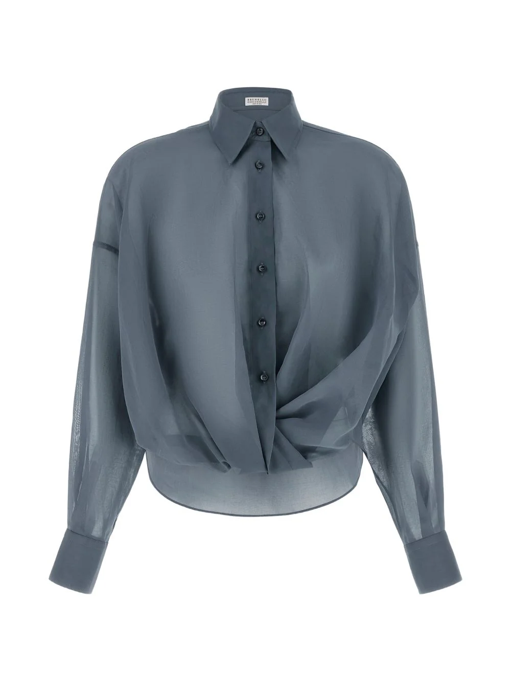 Monili taffeta shirt Highlights - Blue - Semi-transparent - Pointed collar - Dropped shoulder - Button closure - Asymmetric hem Made in Italy Composition Cotton 100% Washing instructions Read Manufacturer Guidelines