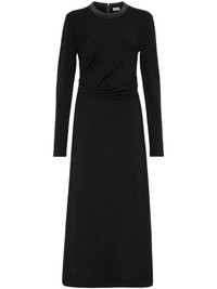 Monili-trim gathered dress Highlights - Black - Virgin wool blend - Signature monili chain detail - Gathered detailing - Round neck - Long sleeves - Calf-length - Straight hem Made in Italy Composition Virgin Wool 94%, Elastane 6% Washing instructions Read Manufacturer Guidelines