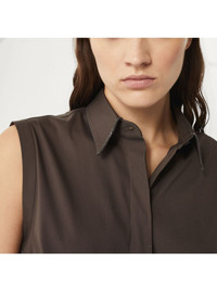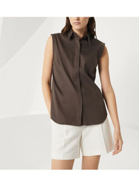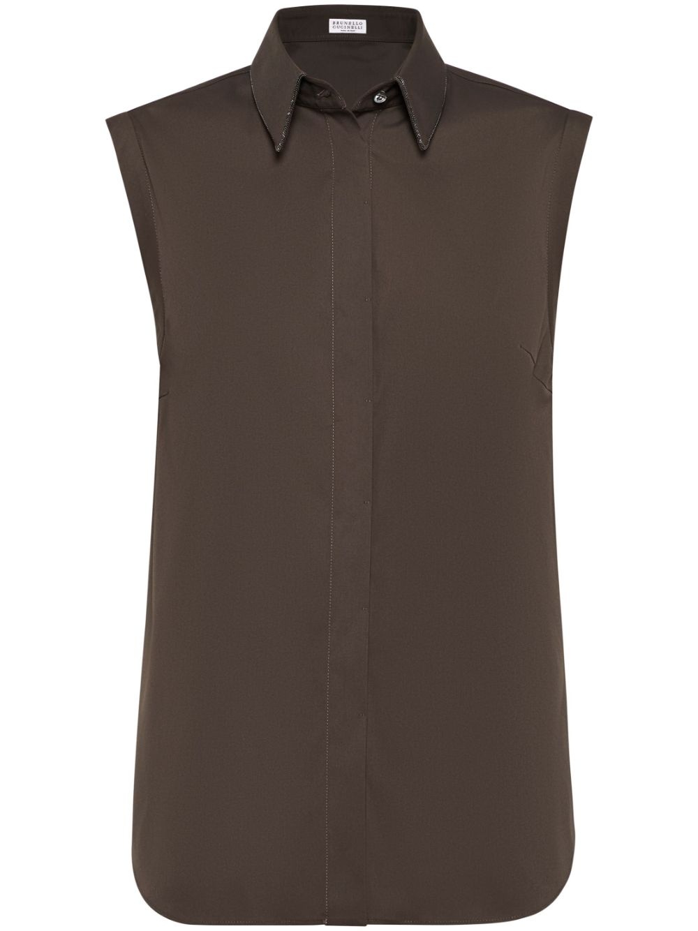 Monili-trim shirt Highlights - Brown - Concealed front button fastening - Classic collar - Sleeveless - Curved hem Made in Italy Composition Cotton 72%, Nylon 28%
