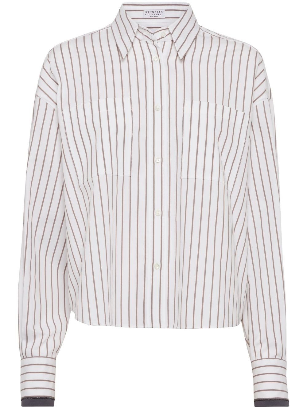 Monili-trim shirt Highlights - White - Front button fastening - Buttoned cuffs - Vertical stripe pattern - Classic collar Made in Italy Composition Cotton 100%, Mother of Pearl 100%