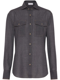 Monili-trim virgin wool shirt Highlights - Charcoal grey - Virgin wool - Signature monili chain detail - Spread collar - Front press-stud fastening - Long sleeves - Two chest flap pockets - Rear curved hem Made in Italy Composition Virgin Wool 100%