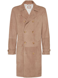 notched-lapels suede coat Highlights - Sand beige - Suede - Notched lapels - Double-breasted button fastening - Belted waist - Two side welt pockets - Long sleeves - Buttoned-cuff sleeves - Straight hem Made in Italy Composition Suede 100% Washing instructions Read Manufacturer Guidelines