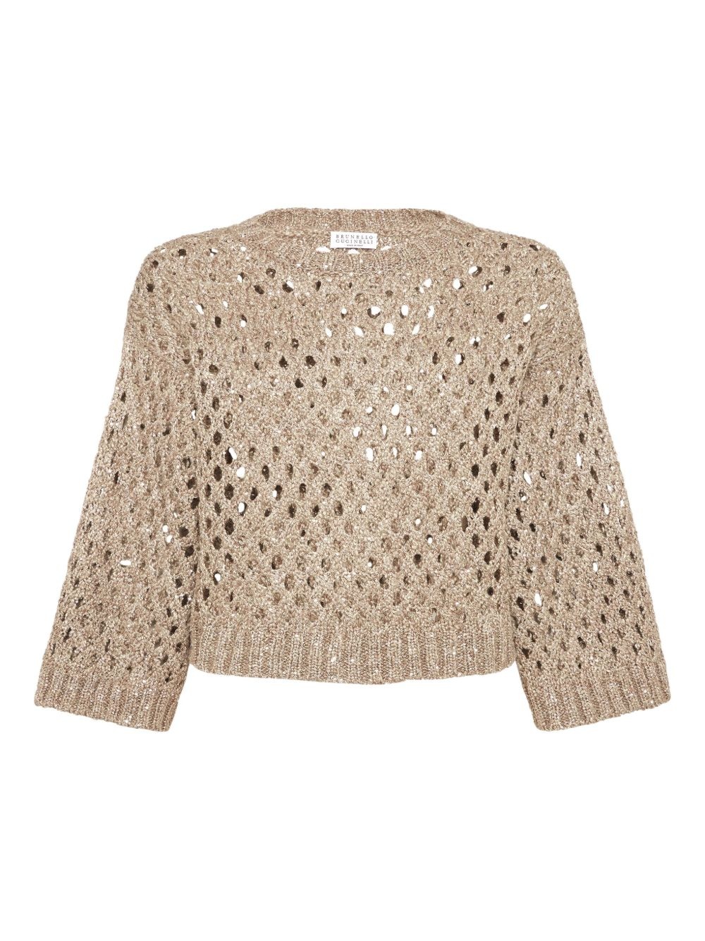 open-knit jumper Highlights - Sand beige - Round neck - Long sleeves - Ribbed hem Made in Italy Composition Silk 36%, Eco Linen 34%, Polyamide 17%, Polyester 13%