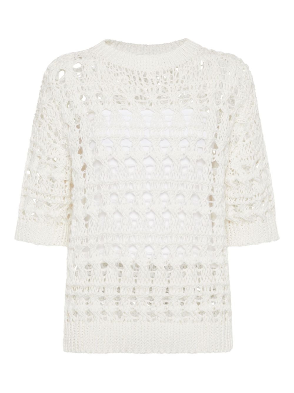 open-knit sweater Highlights - White - Crew neck - Three-quarter length sleeves - Ribbed trim Made in Italy Composition Jute 55%, Cotton 35%, Fabric 10%