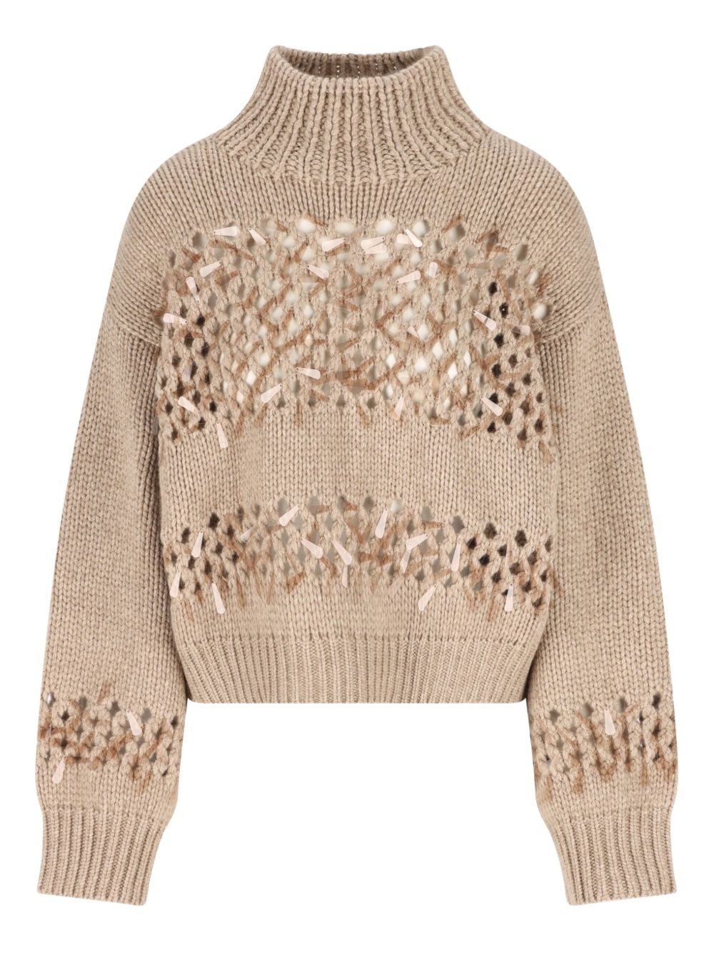 Paillette-embellished Open-knit Cashmere Sweater