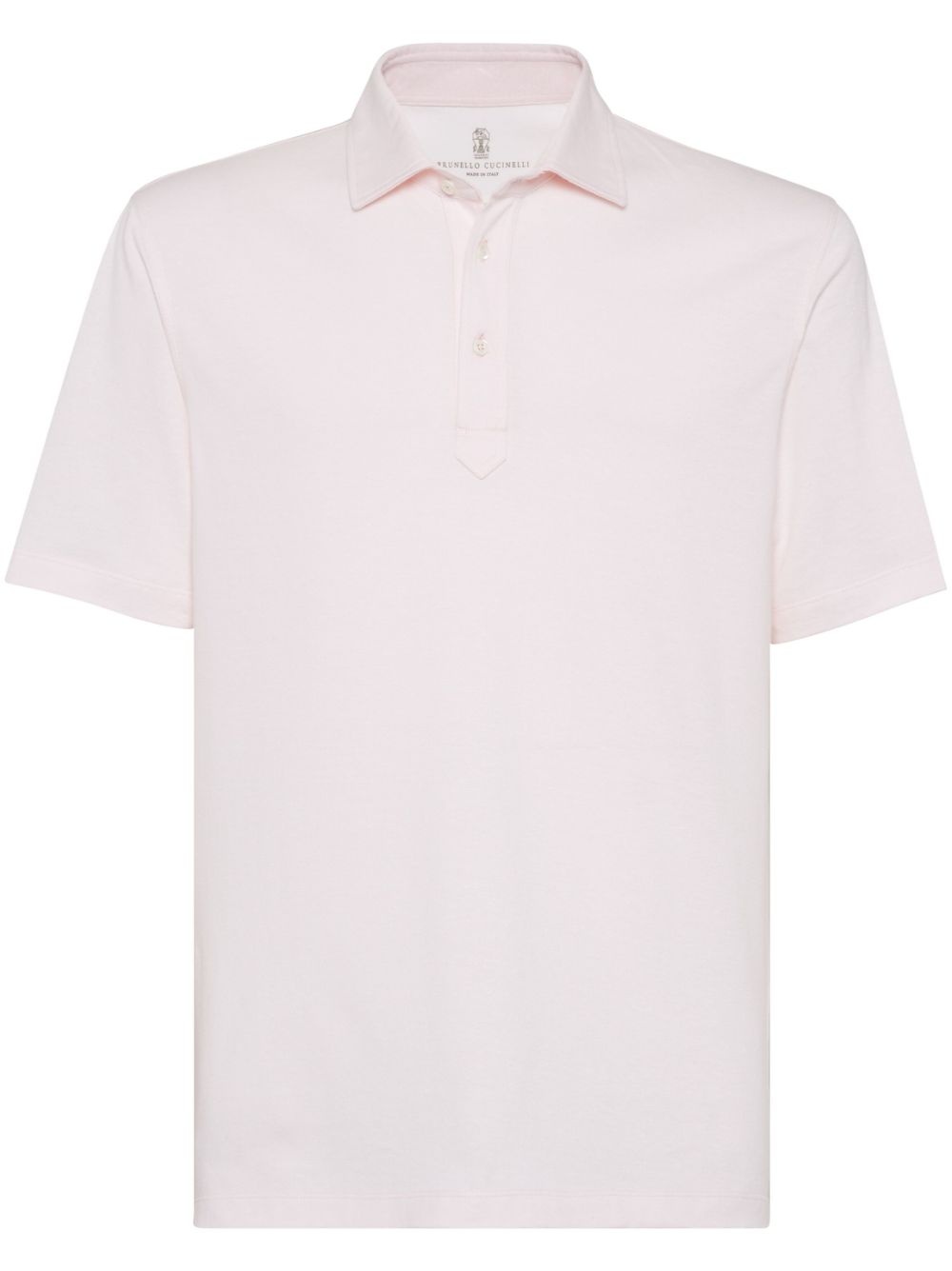 organic cotton-blend polo shirt Highlights - Light pink - Organic cotton-eco linen blend - Polo collar - Front button placket - Short sleeves - Straight hem Made in Italy Composition Organic Cotton 68%, Eco Linen 32% SIZE & FIT Measurement CHEST 40.94 in(104 cm) SLEEVE LENGTH 18.89 in(48 cm) Shoulder Width 17.32 in(44 cm)