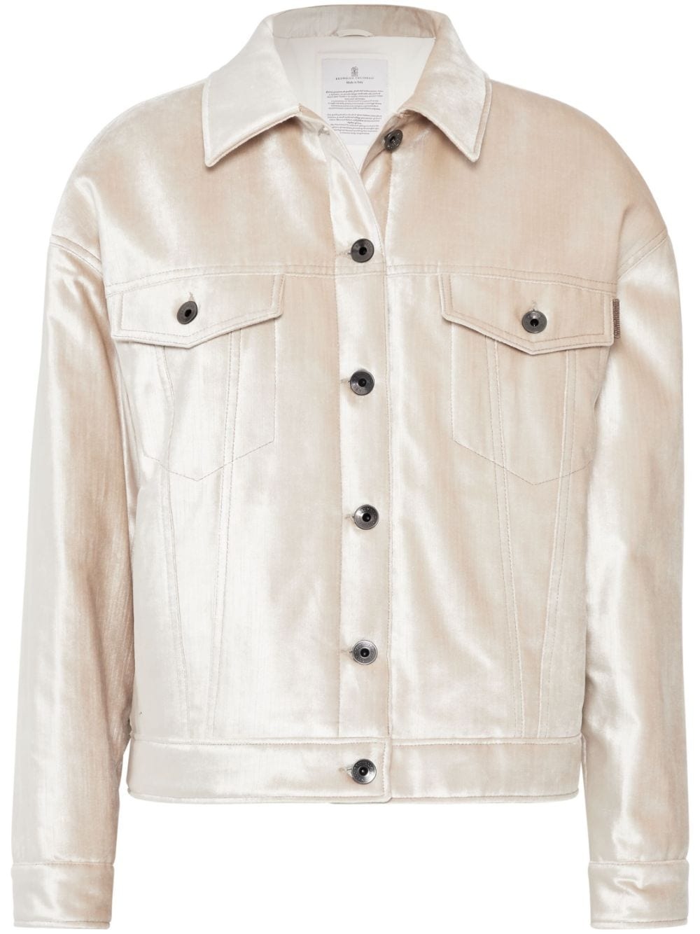 padded pearlescent-finish jacket Highlights - Light beige - Cotton blend - Pearlescent finish - Padded design - Classic collar - Front button fastening - Two chest flap pockets - Long sleeves - Straight hem Made in Italy Composition Cotton 58%, Viscose 42%