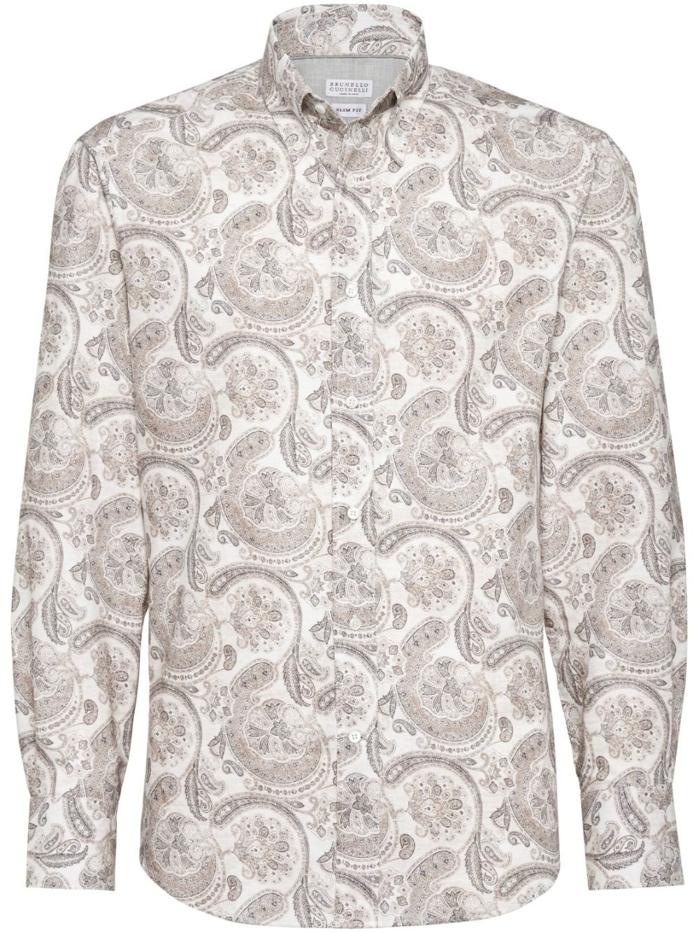 paisley-print cotton shirt Highlights - Chocolate brown/cream white - Cotton - Paisley print - Button-down collar - Front button fastening - Shirt sleeves - Buttoned cuffs - Curved hem Made in Italy Composition Cotton 100%