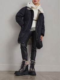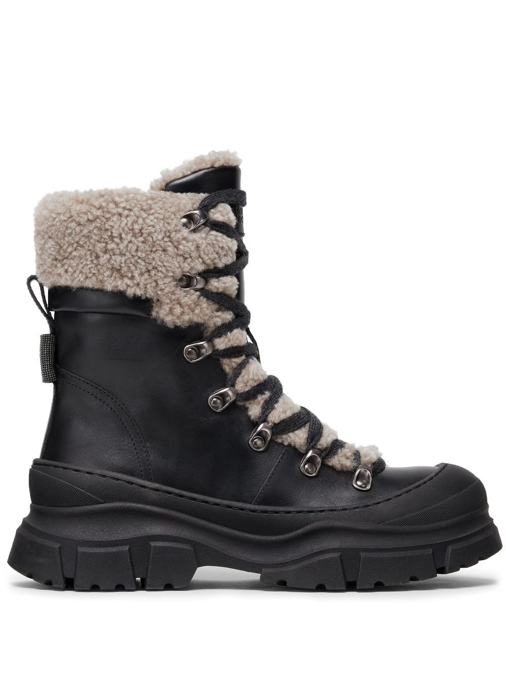 Matte calfskin and shearling mountain boots with shiny detail