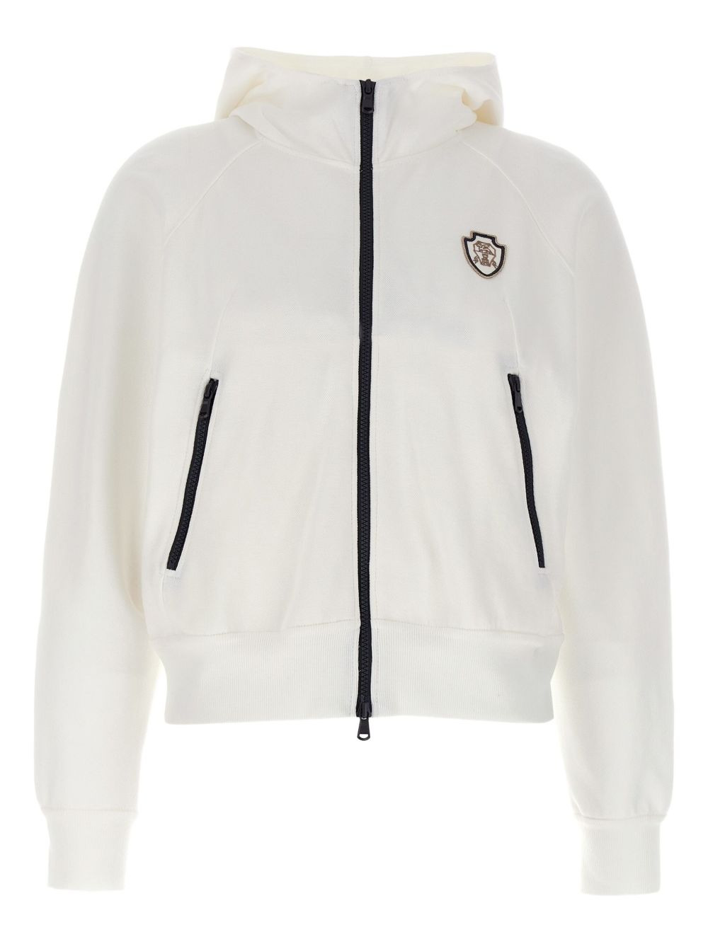 patch-pocket zip-up hooded jacket Highlights - White - Cotton pique - Zip closure - Logo patch - Long cuffed sleeves - Zip pockets Made in Italy Composition Cotton 93%, Polyamide 7% Washing instructions Read Manufacturer Guidelines