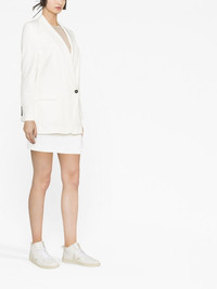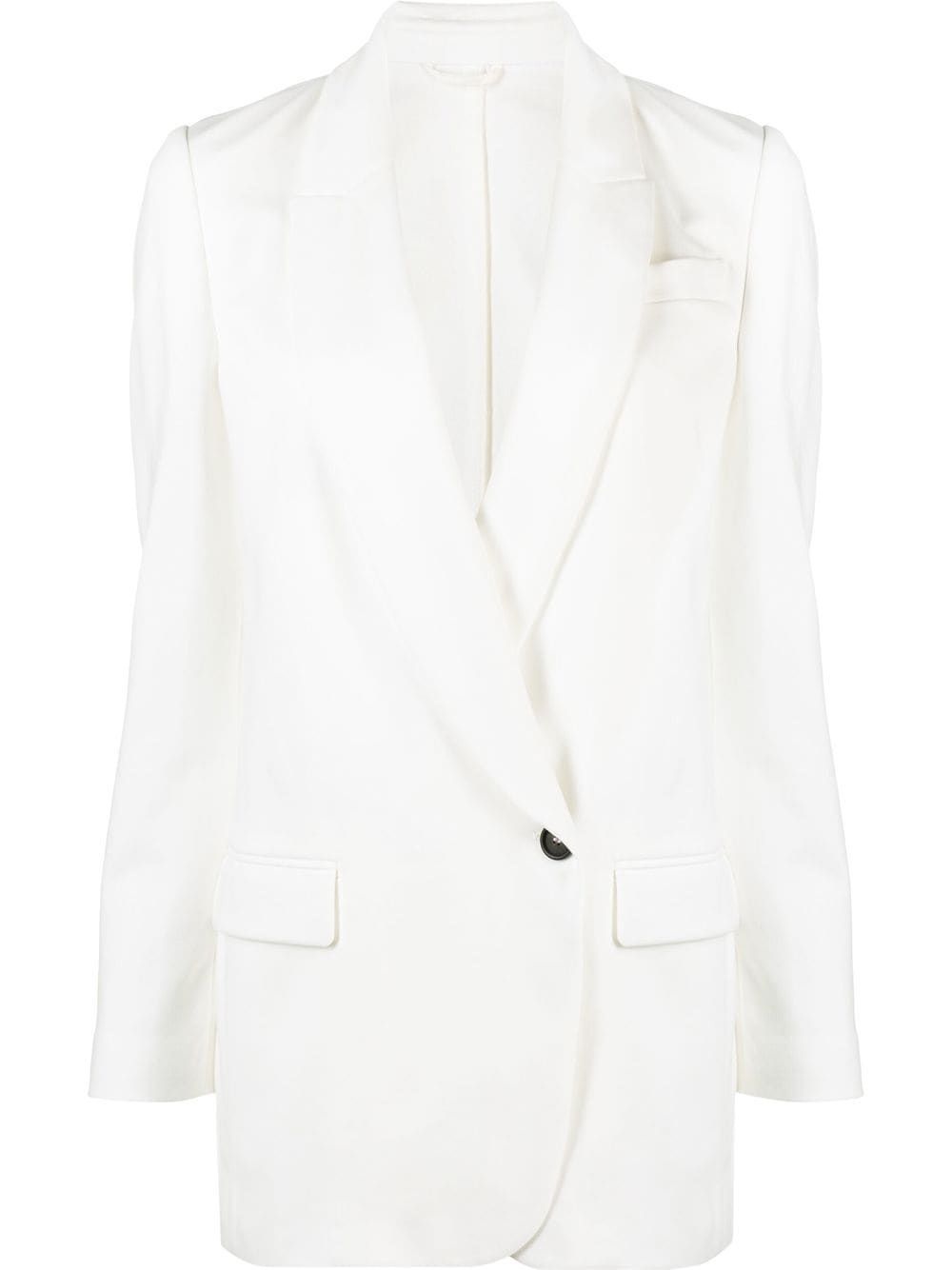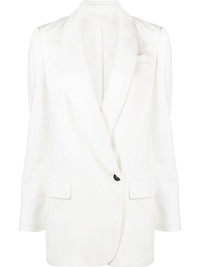 peak-lapels blazer off-white cotton blend peak lapels crossover button fastening jetted chest pocket front flap pockets buttoned-cuff sleeves Made in Italy Composition Outer: Cotton 78%, Polyamide 16%, Spandex/Elastane 6% Lining: Acetate 74%, Silk 26% SIZE & FIT Model measurements Height 5 ft 11 in(1.8 m) Bust/Chest 31.49 in(80 cm) Hips 36.22 in(92 cm) Waist 25.59 in(65 cm) FittingInformation This piece fits true to size. We recommend you get your regular size Cut for a loose fit Made with a mid-weight stretch fabric