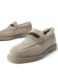 Suede penny loafers with shearling lining and precious insert