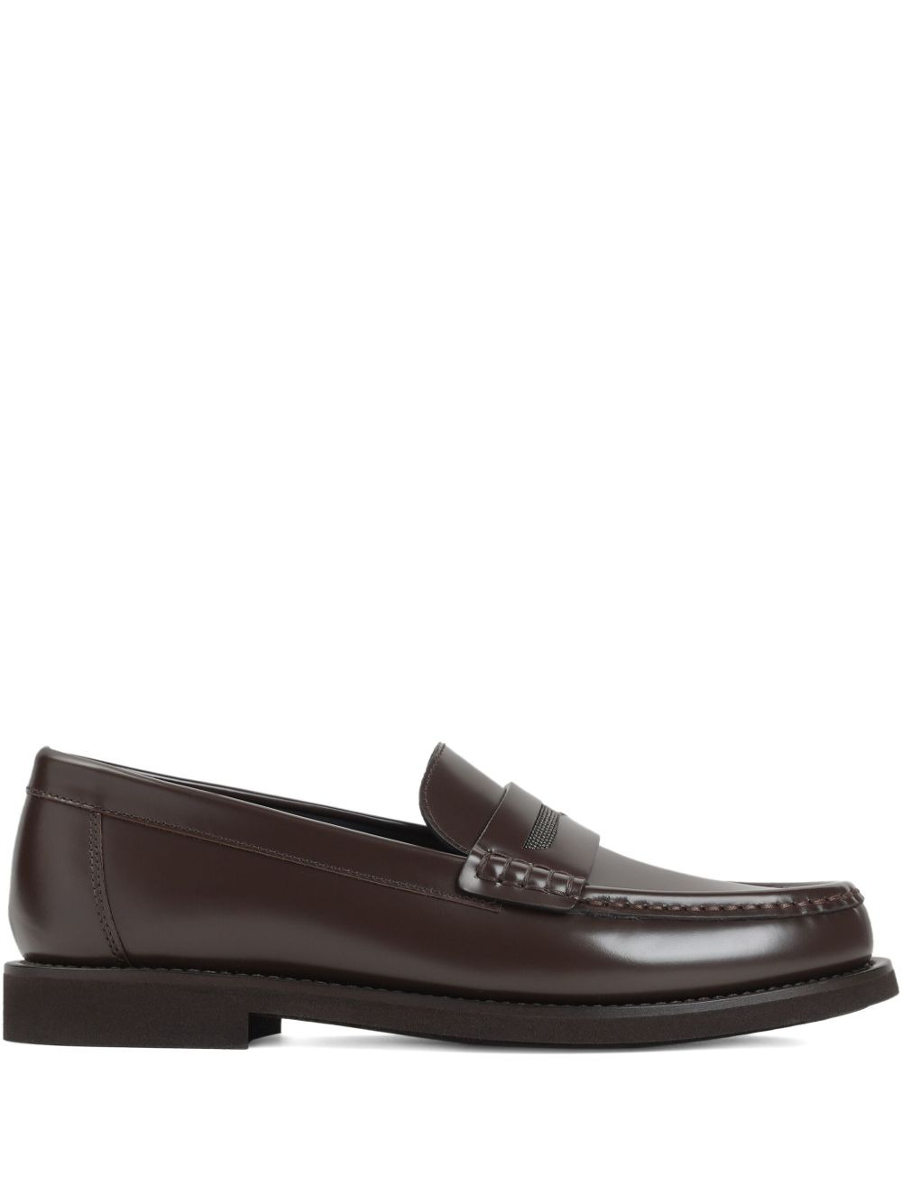 penny-strap leather loafers Highlights - Dark brown - Leather - Moc toe - Stitched detail - Flat sole - Penny strap Made in Italy Composition Lining: Leather 100% Outer: Leather 100% Sole: Rubber 100%