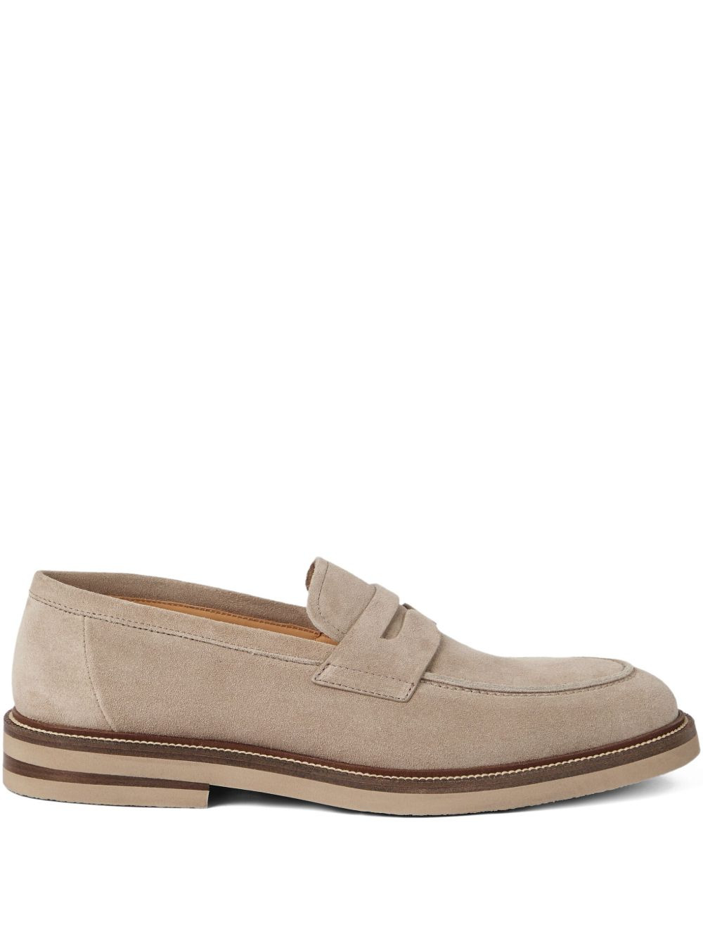 penny-suede loafers Highlights - Beige - Suede upper - Leather sole - Moc toe - Stitched detail - Penny strap Made in Italy Composition Sole: Leather 100% Lining: Leather 100% Outer: Suede 100%