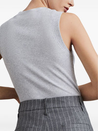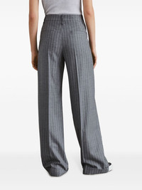 Virgin wool mouliné chalk stripe loose flared trousers with monili