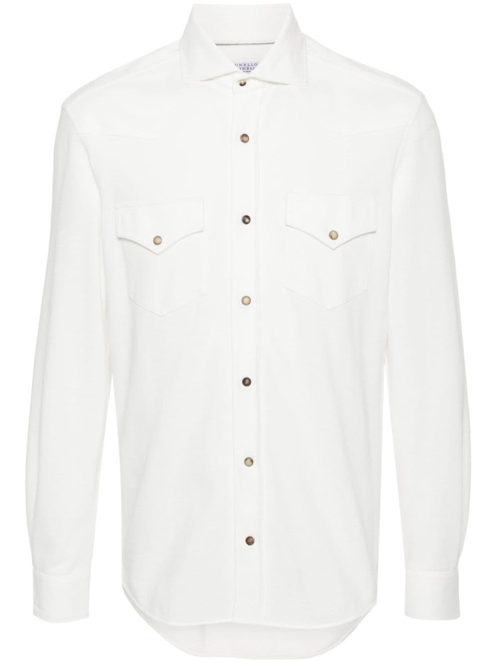pique cotton shirt Highlights - Off-white - Cotton - Pique weave - Spread collar - Long sleeves - Buttoned cuffs - Two chest patch pockets - Internal logo tag - Straight hem - Press-stud fastening Made in Italy Composition Cotton 100% SIZE & FIT Model measurements Height 6 ft 2 in(1.87 m) Bust/Chest 38.18 in(97 cm) Hips 36.61 in(93 cm) Waist 29.13 in(74 cm) FittingInformation Designed for a slim fit, offering a comfortable fit that sits just away from the body The dart stitching adds structure and a closer fit in the torso of this piece Made from a midweight non-stretch fabric, this piece offers minimal elasticity when worn This piece fits true to size – take your usual size
