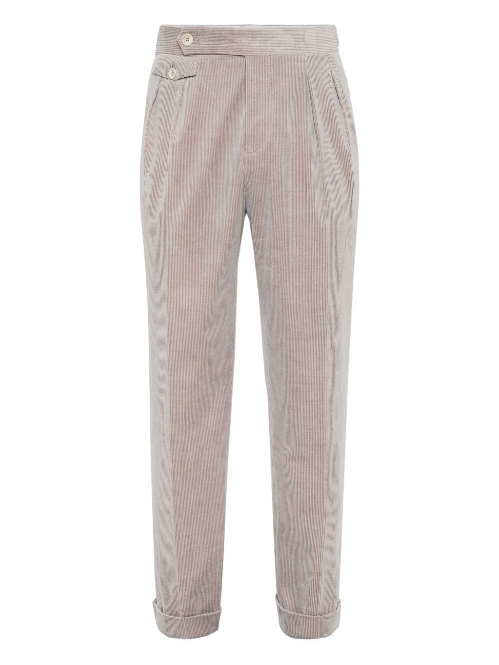 Comfort cotton and cashmere corduroy tailor fit trousers with double pleats and waist tabs