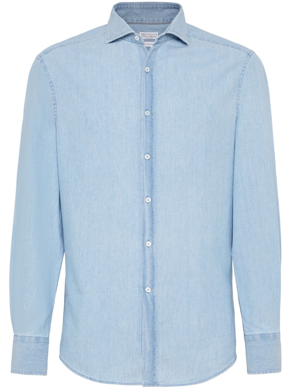 plain button-down shirt Highlights - Light blue cotton plain button-down shirt from brunello cucinelli featuring classic collar, front button fastening, long sleeves and curved hem. Made in Italy Composition Outer: Cotton 100% SIZE & FIT Model measurements Height 6 ft 2 in(1.87 m) Bust/Chest 38.18 in(97 cm) Hips 36.61 in(93 cm) Waist 29.13 in(74 cm) FittingInformation This piece fits true to size. We recommend you get your regular size Cut for a slim fit Made with a mid-weight non-stretch fabric Washing instructions Hand Wash
