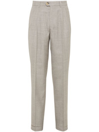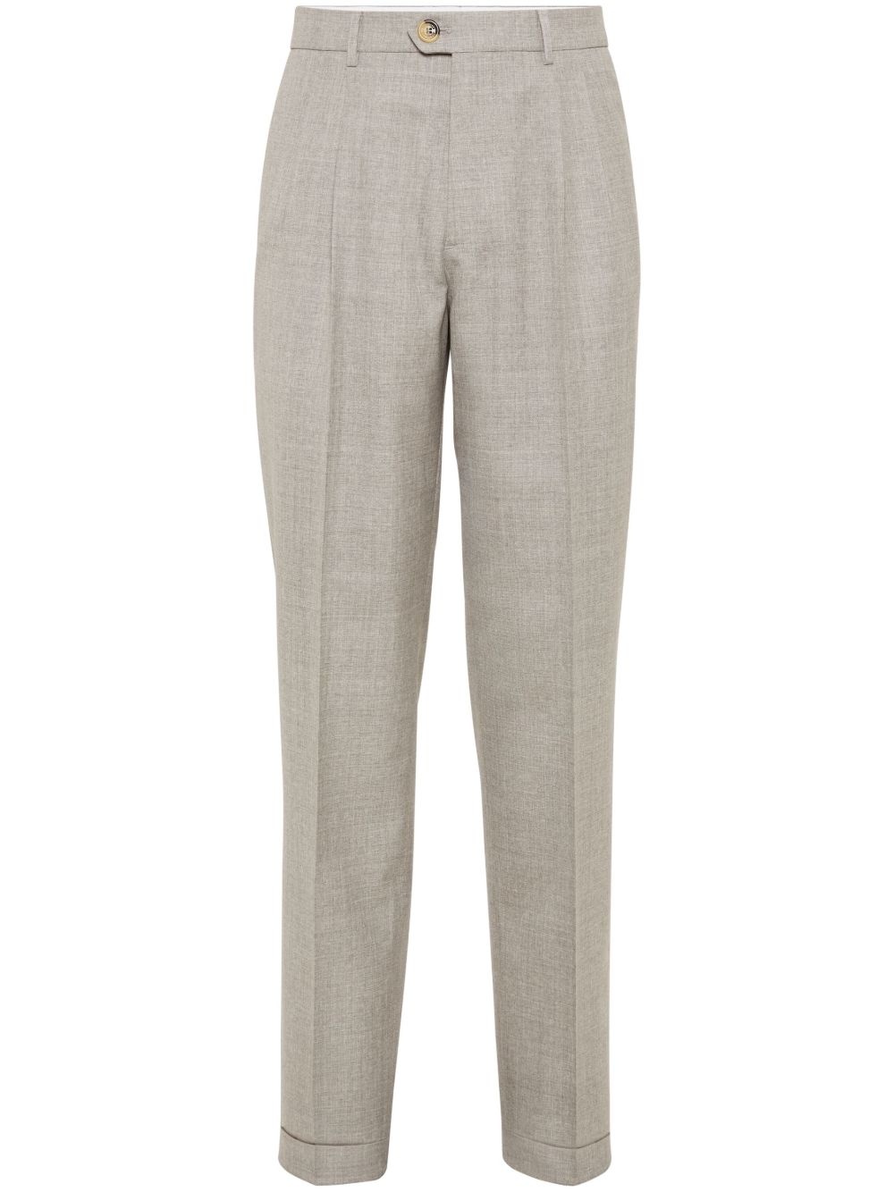 pleat-detail tailored trousers Highlights - Light beige - Concealed front button, hook and zip fastening - Two side slit pockets - Two rear welt pockets - Belt loops Made in Italy Composition Virgin Wool 100%