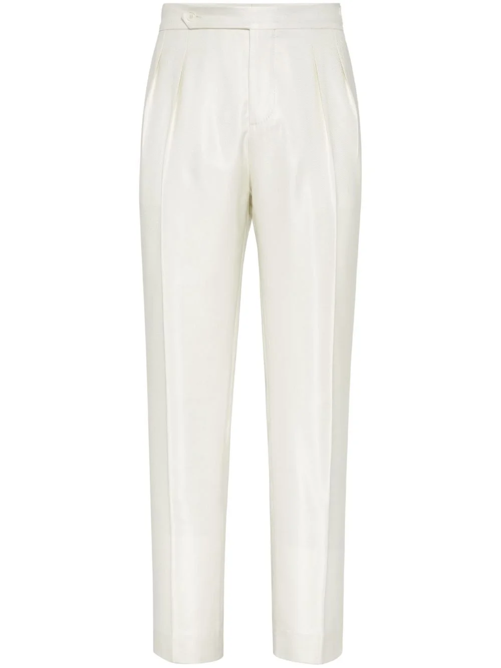 Silk diagonal tuxedo trousers with double pleats and tabbed waistband