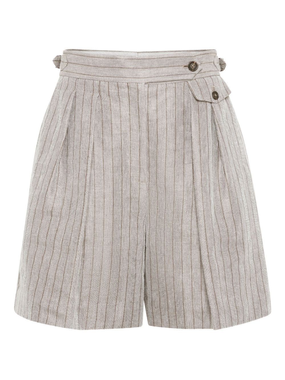pleat-detailing shorts Highlights - Ash grey - Off-centre front fastening - Two side slit pockets - Two rear jetted pockets - Vertical stripe pattern Made in Italy Composition Eco Linen 68%, Nylon 32%