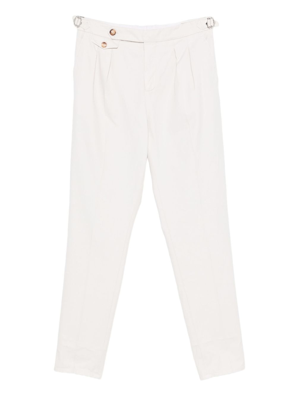 pleated button trousers Highlights - Off-white - Pleated front - Button fastening - High waist Made in Italy Composition Lining: Cotton 58%, Polyester 42% Outer: Cotton 100% SIZE & FIT Model measurements Height 6 ft 2 in(1.87 m) Bust/Chest 37.79 in(96 cm) Hips 37.79 in(96 cm) Waist 30.31 in(77 cm) Washing instructions Machine Wash