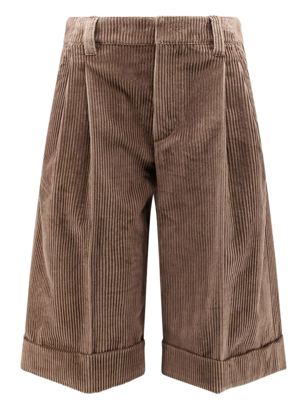 pleated corduroy shorts Highlights - Brown - Corduroy texture - Pleated front - Zip fly - Cuffed hems - Straight leg Made in Italy Composition Cotton 100% Washing instructions Read Manufacturer Guidelines