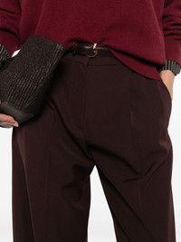 Pleated wool and cotton-blend twill tapered pants Burgundy