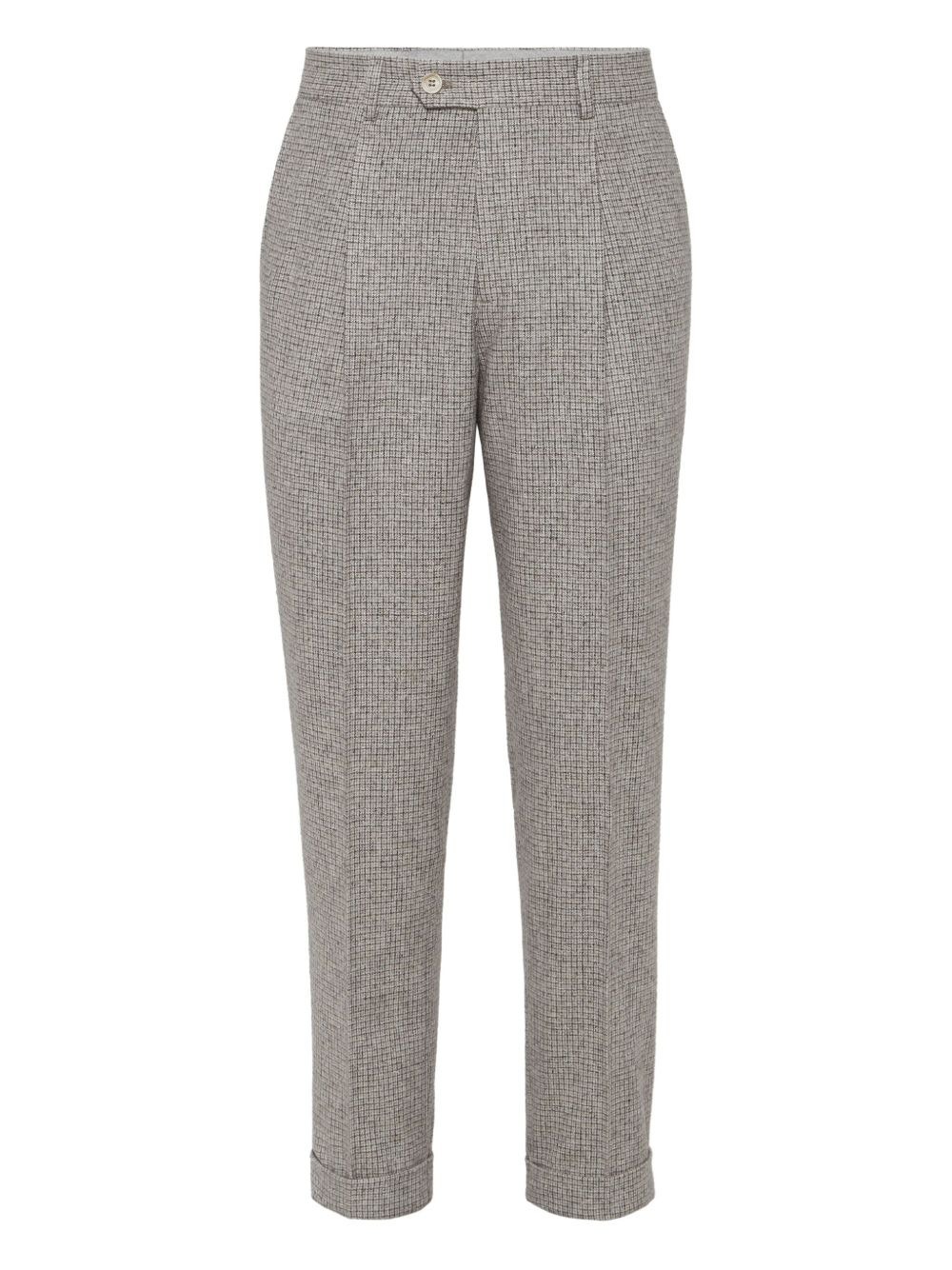 pleated-front check-pattern trousers Highlights - Brown - Check pattern - Pleated front - Button fastening - Turn-up hems Made in Italy Composition Silk 51%, Wool 47%, Fabric 2% Washing instructions Read Manufacturer Guidelines