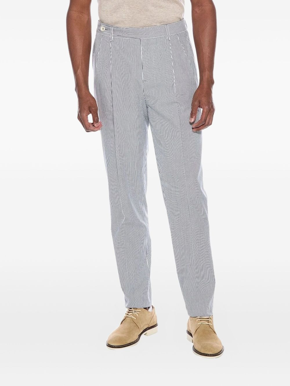 Striped comfort cotton easy fit trousers with double pleats and tabbed waistband