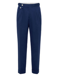 Comfort cotton and cashmere gabardine tailor fit trousers with double pleats and waist tabs