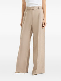 Sparkling linen twill loose pleated trousers with monili