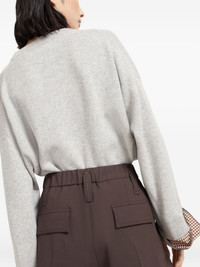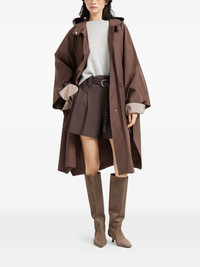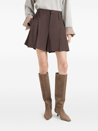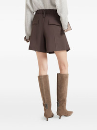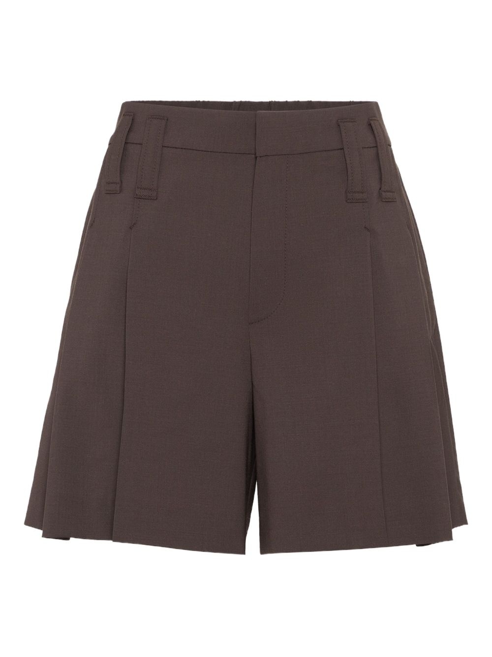pleated shorts Highlights - Chocolate brown - Concealed front fastening - Two side slit pockets - Two rear flap pockets - Thigh-length Made in Italy Composition Virgin Wool 75%, Nylon 23%, Fabric 2%