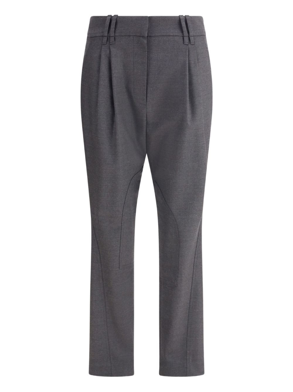 pleated trousers Highlights - Dark grey - Pleated front - Hook-and-eye closure - Zip fly - Side slit pockets - Two rear button-fastening jetted pockets - Waistband loops Made in Italy Composition Wool 95%, Elastane 5% Washing instructions Read Manufacturer Guidelines
