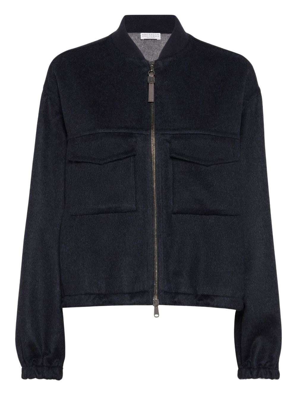 pocket-detail zip-front jacket Highlights - Dark blue - Virgin wool - Zip fastening - Flap pockets - Elasticated cuffs - Cropped hem Made in Italy Composition Virgin Wool 100% Washing instructions Specialist Cleaning