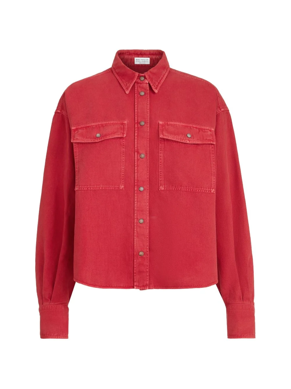 pocket garment-dyed shirt Highlights - Red - Button fastening - Point collar - Front flap pockets - Long sleeves - Buttoned cuffs Made in Italy Composition pure cotton 60%, Eco Linen 40% Washing instructions Hand Wash