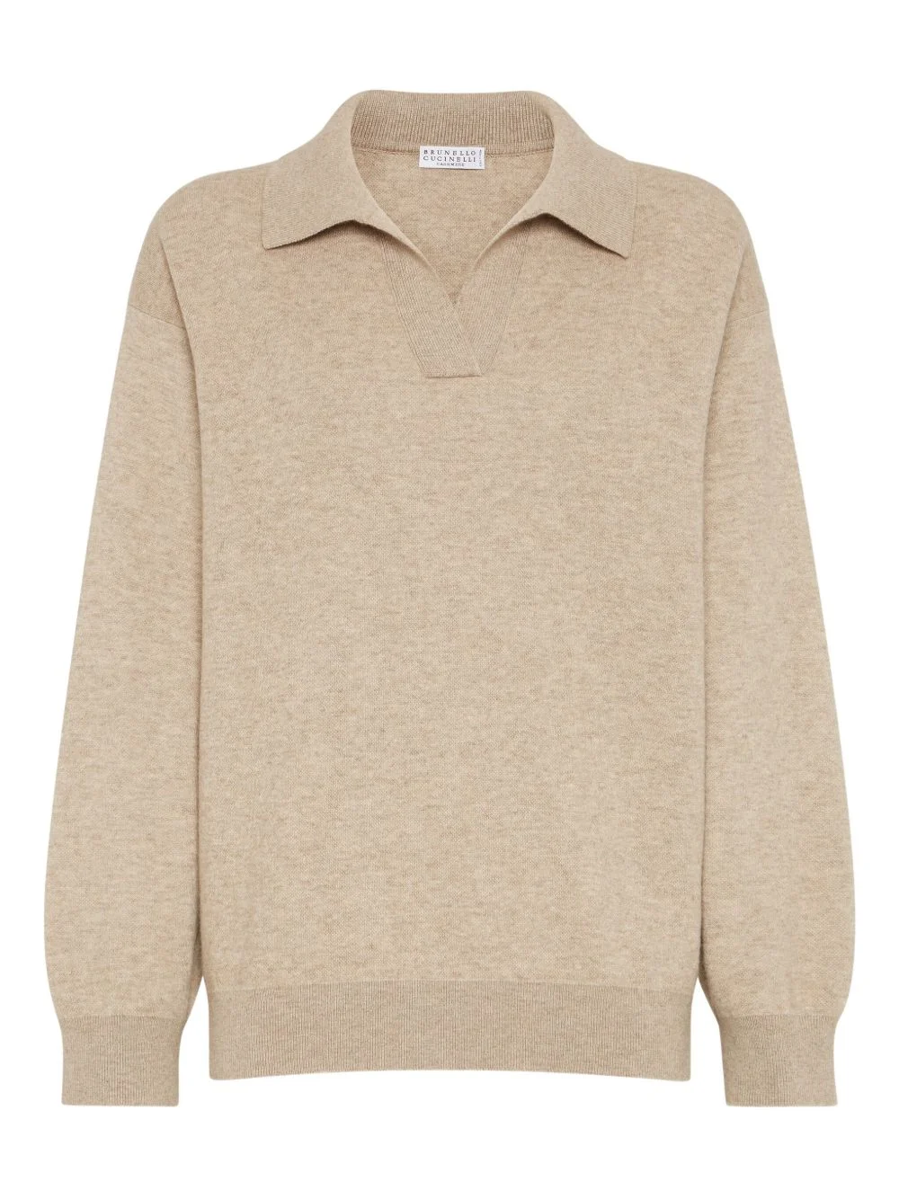 polo-collar sweater Highlights - Biscuit - Polo collar - Long sleeves - V-neck - Ribbed hem Made in Italy Composition Cashmere 96%, Polyamide 3%, Elastane 1% Washing instructions Hand Wash