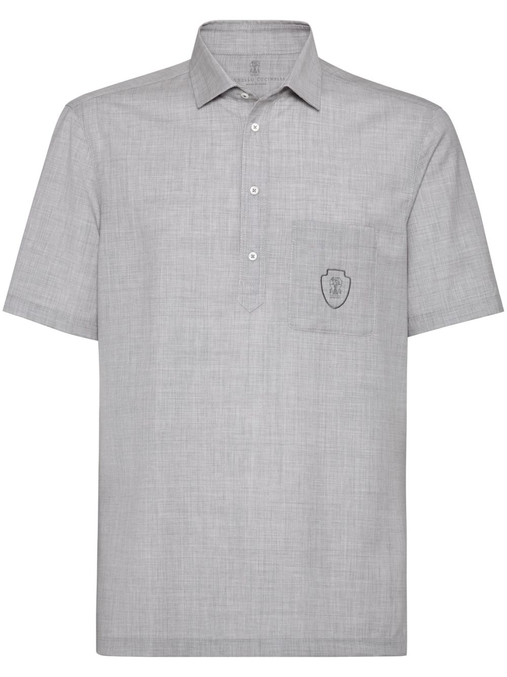 poplin polo shirt Highlights - Light grey - Front button placket - Chest patch pocket - Applique logo - Polo collar Made in Italy Composition Virgin Wool 100%