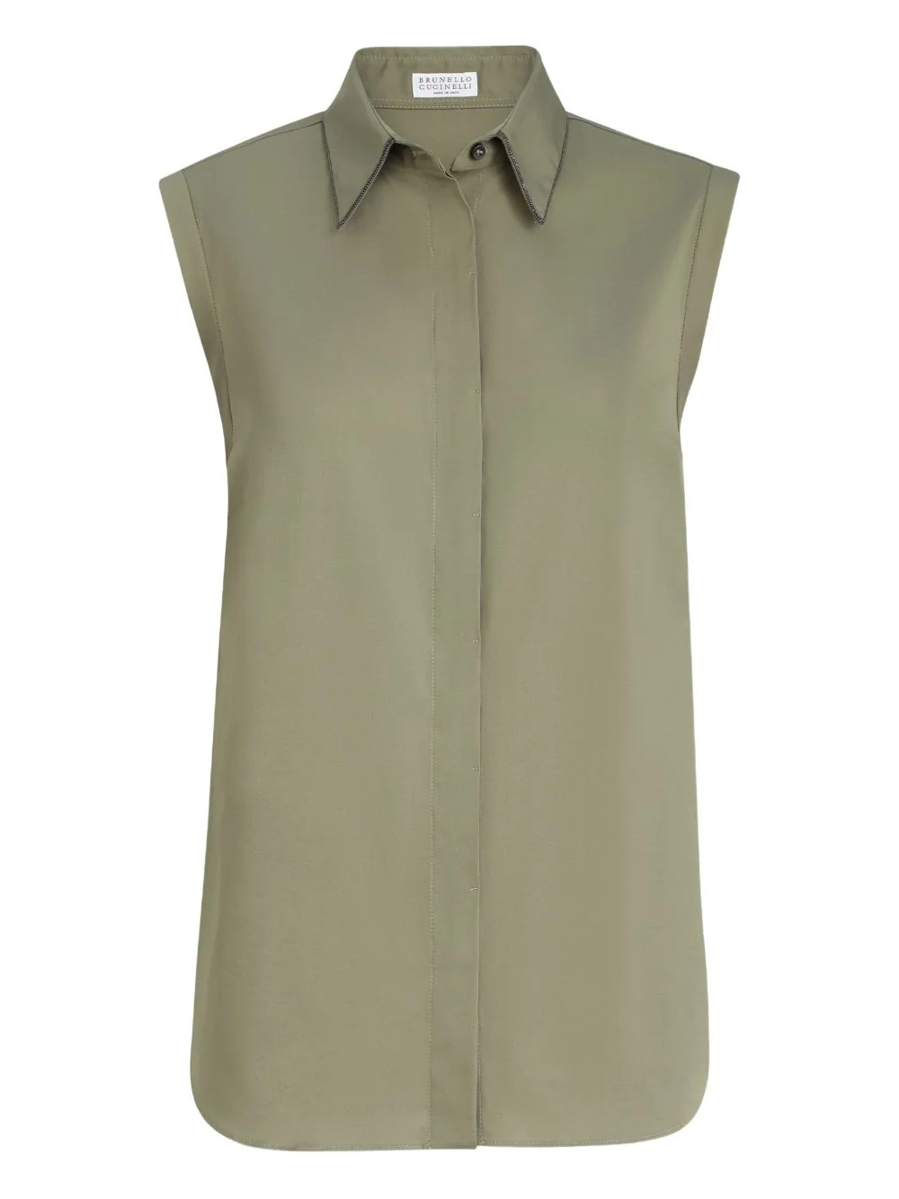 Stretch cotton poplin sleeveless shirt with shiny trim