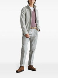 Cotton and virgin wool gabardine leisure fit trousers with pleat