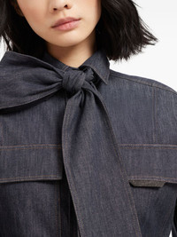 Lightweight no-fade denim pussybow shirt with shiny flap detail