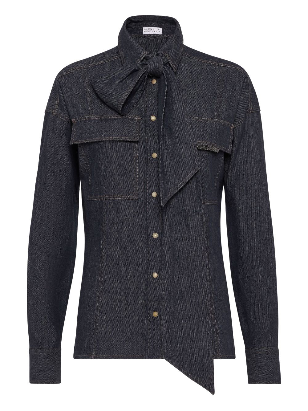 pussy-bow shirt Highlights - Indigo blue - Front press-stud fastening - Two chest flap pockets - Press-stud fastening cuffs - Straight hem Made in Italy Composition Cotton 100%