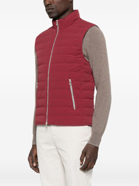 quilted zip-front vest Highlights - Burgundy - Quilted design - Zip fastening - Stand collar - Sleeveless - Side pockets Made in Italy Composition Outer: Polyamide 87%, Elastane 13% Lining: Nylon 100%, Polyamide 100%, Goose Down 90%, Goose Feather 10% SIZE & FIT Model measurements Height 6 ft 0 in(1.84 m) Bust/Chest 37.79 in(96 cm) Hips 37 in(94 cm) Waist 31.49 in(80 cm) Washing instructions Dry Clean Only