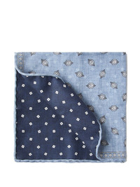 reversible printed pocket square Highlights - Blue - Patterned design - Scalloped edges - Contrasting reverse side Made in Italy Composition Silk 100% SIZE & FIT Measurement LENGTH 13.77 in(35 cm) WIDTH 13.77 in(35 cm)