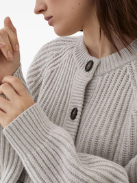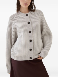 ribbed button-up cardigan Highlights - Light gray - Front button fastening - Raglan sleeves - Side pockets - Long sleeves Made in Italy Composition Cashmere 100% Washing instructions Read Manufacturer Guidelines